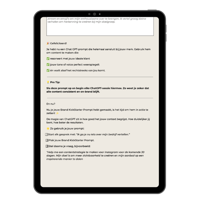 Creëer content die jouw unieke stijl weerspiegelt. Leer in 3 stappen je eigen Merkstarter Prompt maken, zodat elke tekst jouw stem draagt.